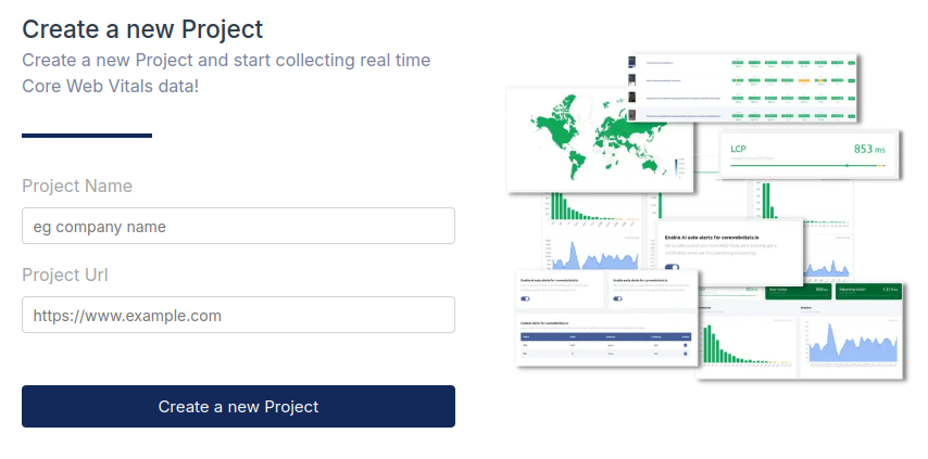 Tell us what to track. Enter your website details in the "Create a new Project" form. This generates your unique Site ID, which acts as the key for your performance data.